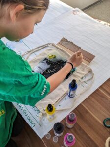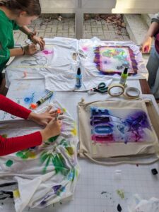 Am 20. Februar gab es im Jugendhaus NEON einen kreativen „Stencil“-Workshop. Dabei konnten Jugendliche mit Schablonen und Textilfarben Beutel und T-Shirts im Graffiti-Style kreativ gestalten. Währenddessen tauschten wir uns über ihre Handynutzung aus, wie viel Zeit sie dort verbringen, welche Plattformen sie nutzen und ob und wie stark die Nutzung von ihren Eltern eingeschränkt wird.