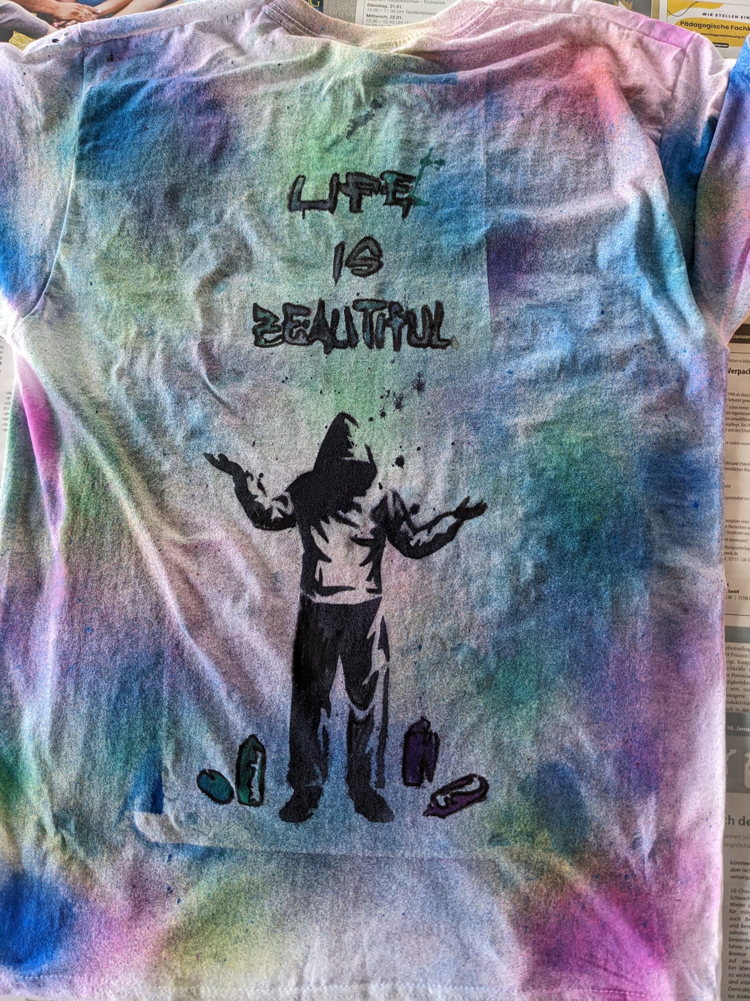 Am 20. Februar gab es im Jugendhaus NEON einen kreativen „Stencil“-Workshop. Dabei konnten Jugendliche mit Schablonen und Textilfarben Beutel und T-Shirts im Graffiti-Style kreativ gestalten. Währenddessen tauschten wir uns über ihre Handynutzung aus, wie viel Zeit sie dort verbringen, welche Plattformen sie nutzen und ob und wie stark die Nutzung von ihren Eltern eingeschränkt wird.