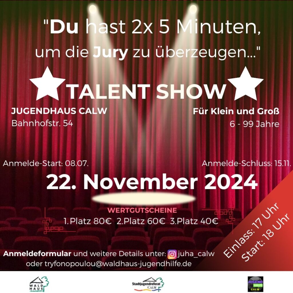 Bei der nunmehr sechsten Talent Show im Calwer Jugendhaus haben wieder einmal mehrere Talente von Jung bis Alt ihre Talente präsentiert. Von musikalischen Darbietungen, Tanzeinlagen bis hin zu Zauberkünsten wurden ganz unterschiedliche Talente präsentiert. Beim Publikum im vollbesetzten Jugendhaus kamen die Einlagen super an. Eine Jury bewertete wieder die einzelnen Auftritte, sodass am Ende die ersten drei Plätze prämiert wurden.