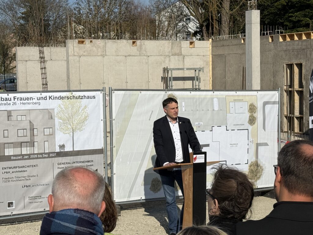 „Die Beharrlichkeit, mit der das Projekt verfolgt wurde, hat sich am Ende ausgezahlt“, sagte Roland Bernhard beim Spatenstich. Denn der Weg war voller Herausforderungen: Bereits 2021 war der Grundsatzbeschluss für das Frauen- und Kinderschutzhaus gefallen. Damals wurde eine Förderanfrage an den Bund gestellt, doch diese versank jahrelang, bis der Landkreis schließlich Ende 2023 die Anfrage zurückzog und Hilfe beim Land suchte. Dieses bewilligte schließlich den Antrag und unterstützt das Projekt nun mit 3,8 Millionen Euro. Insgesamt liegen die Kosten bei 6,6 Millionen Euro. Betreiber wird das Waldhaus sein.