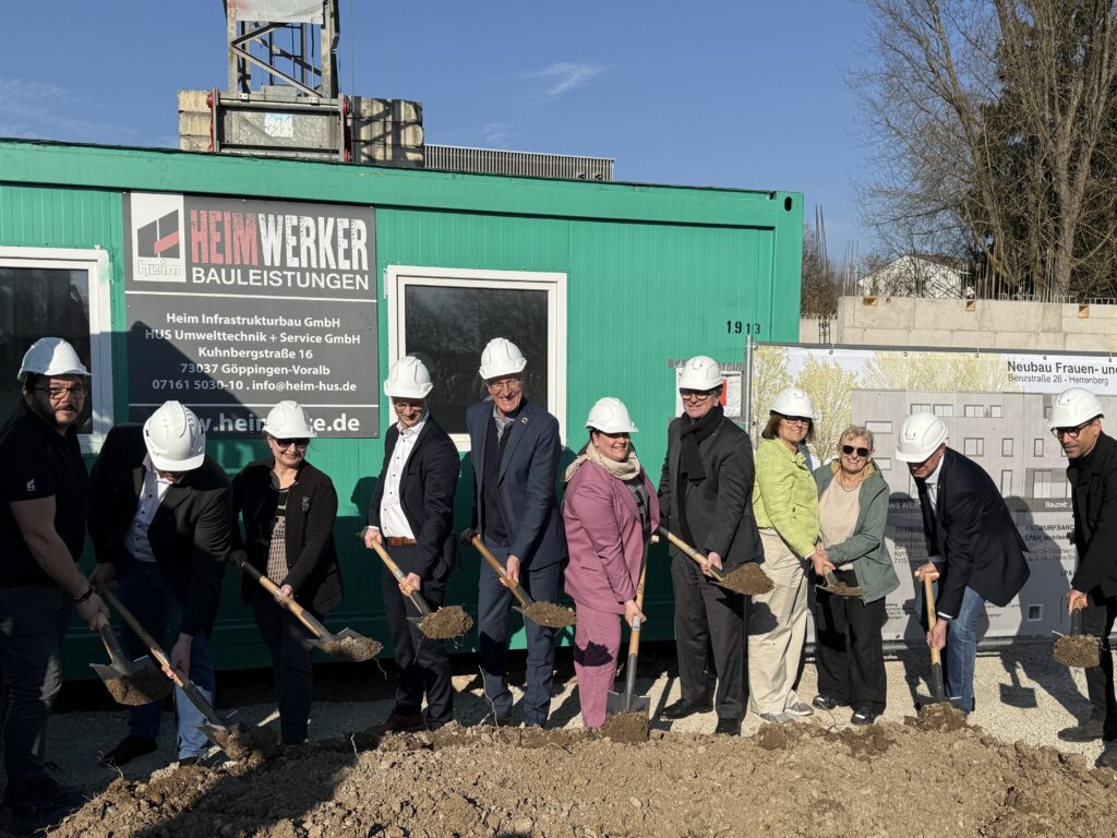 Der Spatenstich, bei dem auch Sozialminister Manfred Lucha anwesend war, erfolgte am Donnerstag in der Herrenberger Benzstraße. Die ersten Mauern des Hauses stehen bereits. Bis Ende 2027 soll dort ein barrierefreies, dreigeschossiges Gebäude mit 16 flexiblen Wohneinheiten entstehen. Ein-, Zwei- und Drei-Zimmerwohnungen sowie Gemeinschafts-, Beratungs- und Technikräume kommen in dem Gebäude unter. Das Haus verfüge über einen hohen baulichen Sicherheitsstandard, erklärt Stephanie Dieterle von der Waldhaus Jugendhilfe. Gemeinsam mit Monika Becker, Leiterin der Hilfseinrichtungen Amila und Thamar, Annette Leitner-Sautter, Bereichsleiterin im Waldhaus und Lisa Artschwager, Geschäftsführerin des Waldhauses, ist sie Teil des Teams, die das Frauenhaus maßgeblich konzipiert hat.